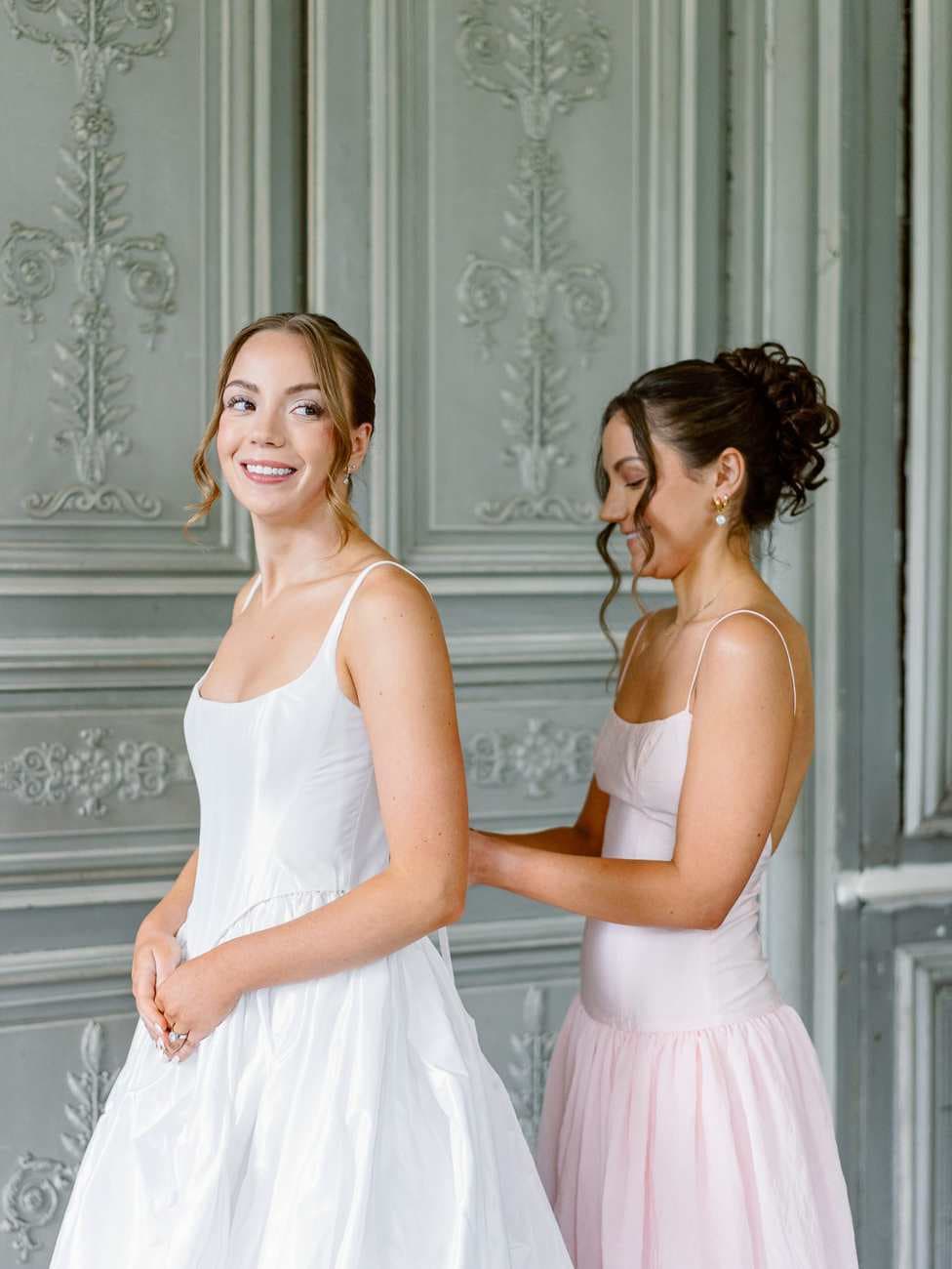 The morning of Lydia and Mitch’s wedding at Château de Thauvenay was calm, joyful, and filled with laughter, a perfect reflection of their intimate celebration.