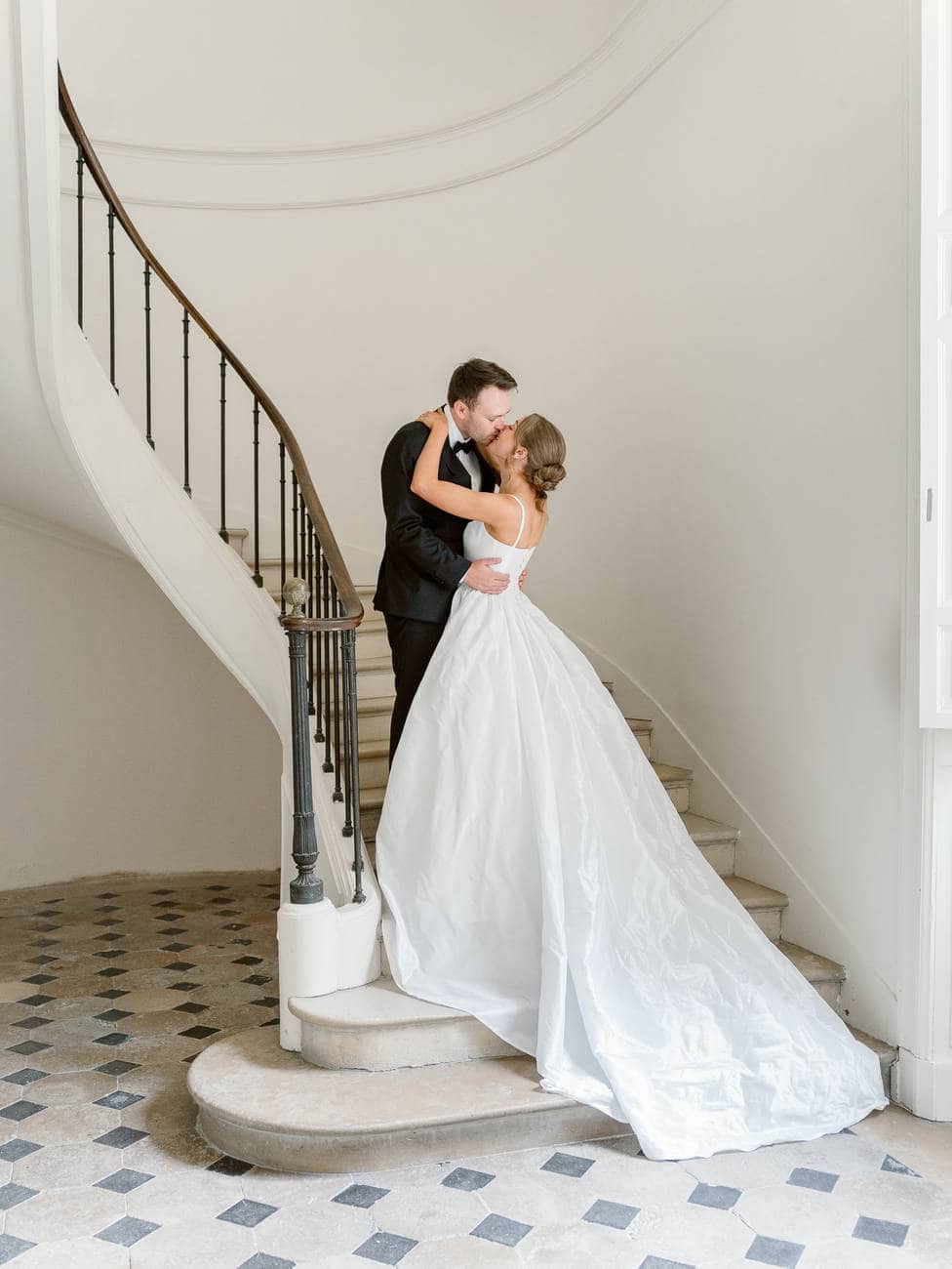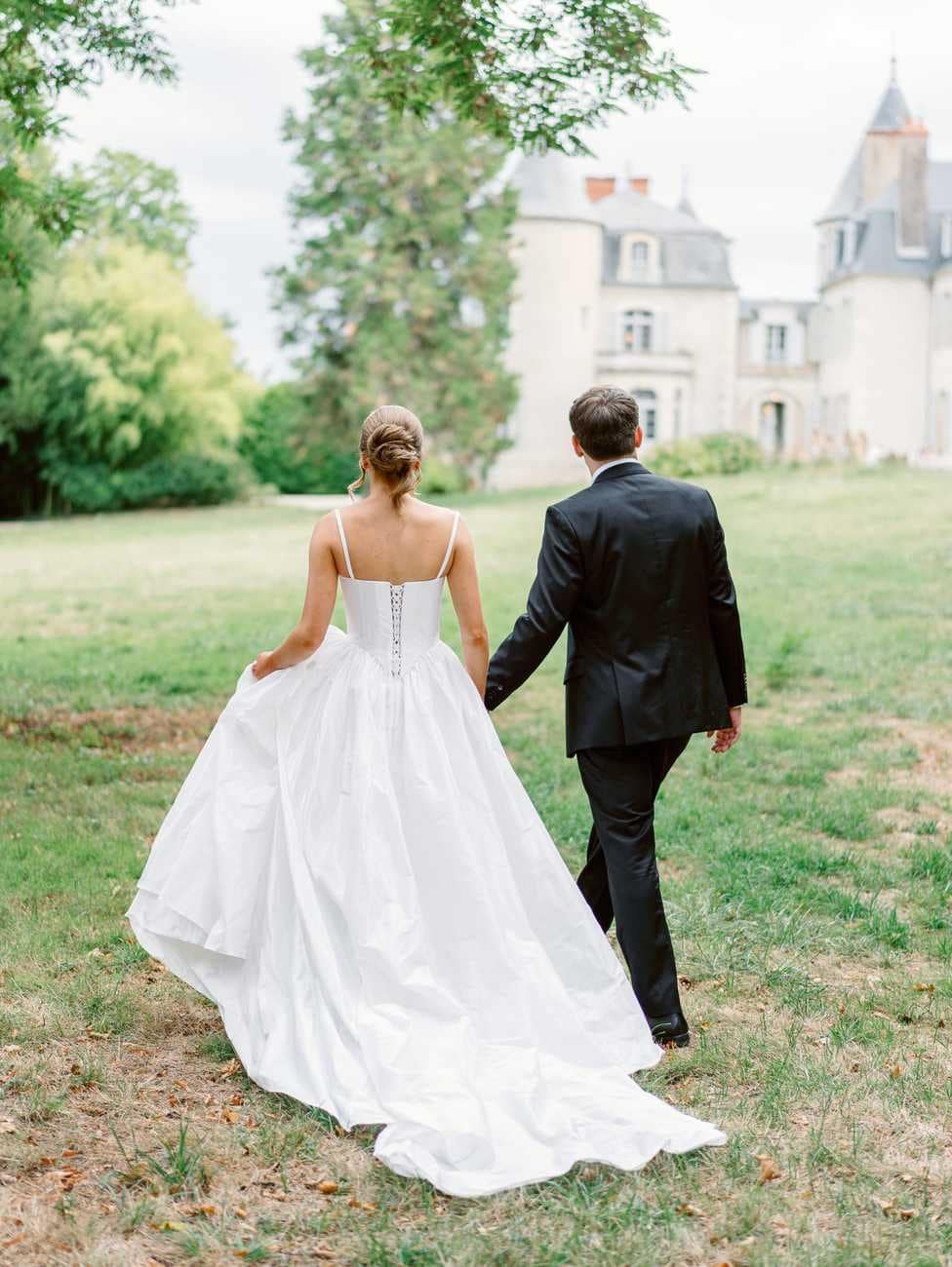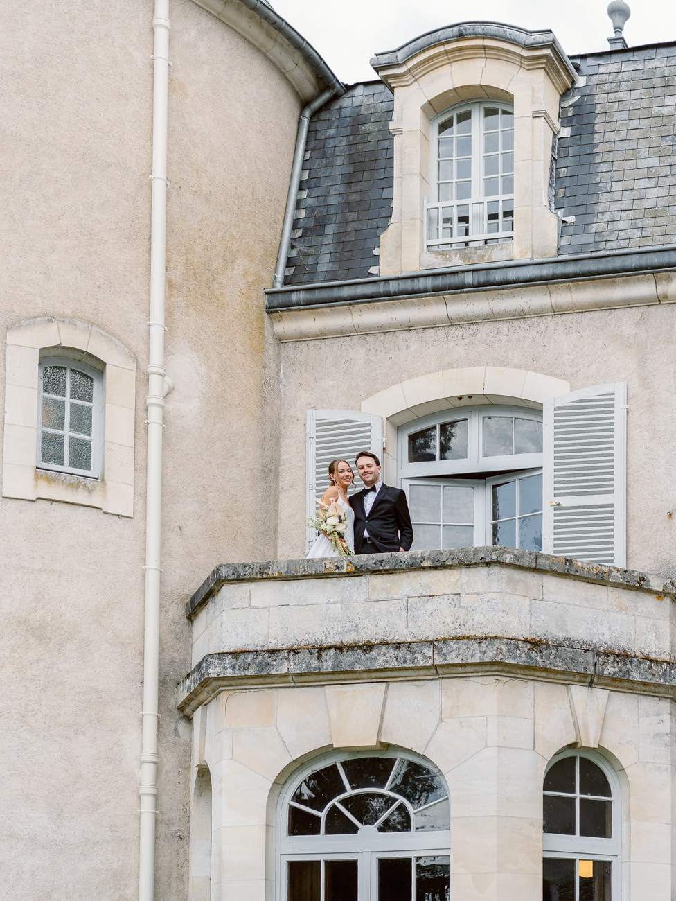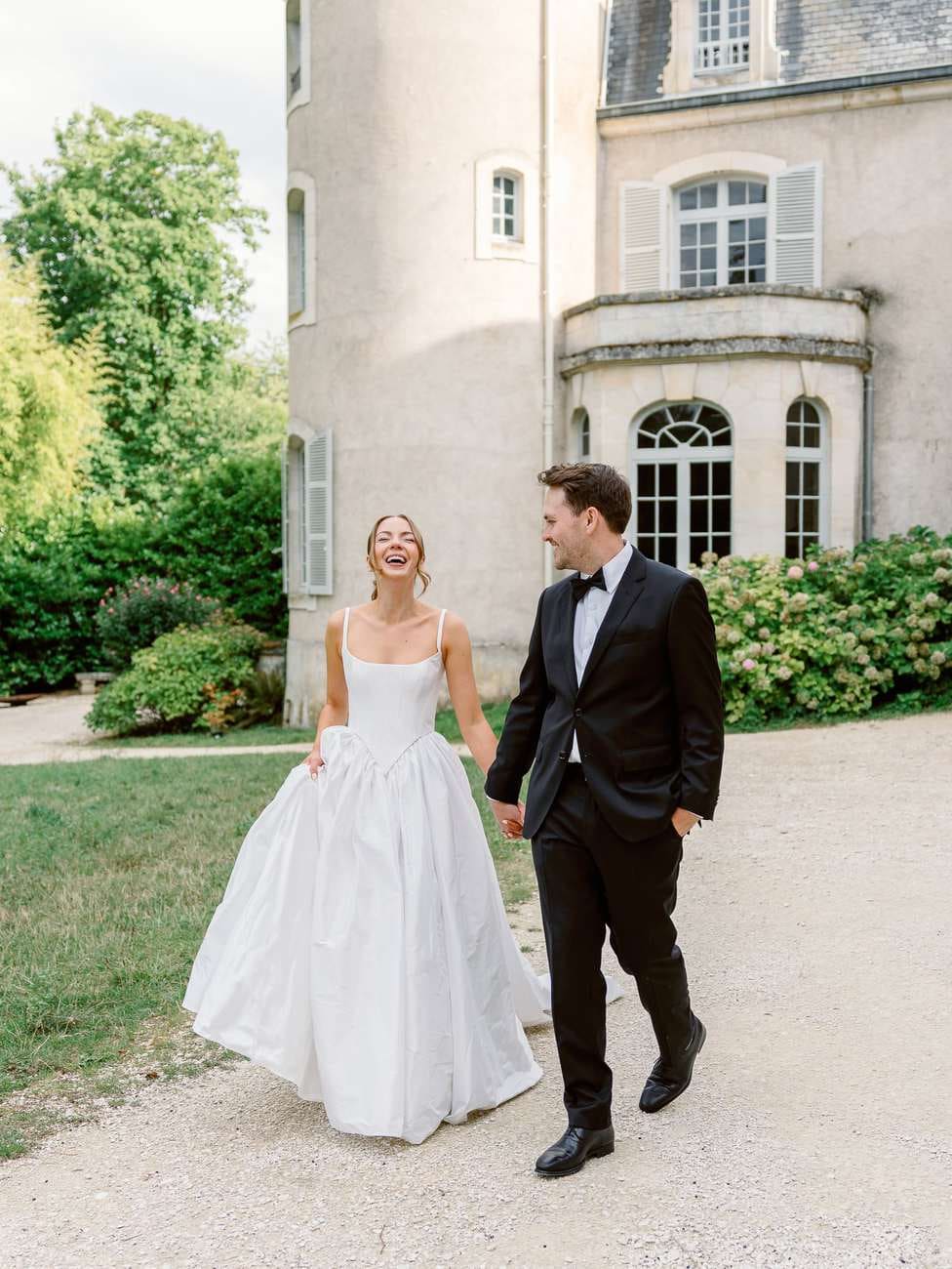 We began in the château’s stunning white spiral staircase, creating timeless and elegant images that highlighted the venue’s historic charm. From there, we moved to the gardens, where the backdrop of the château itself added a majestic touch to their photos.