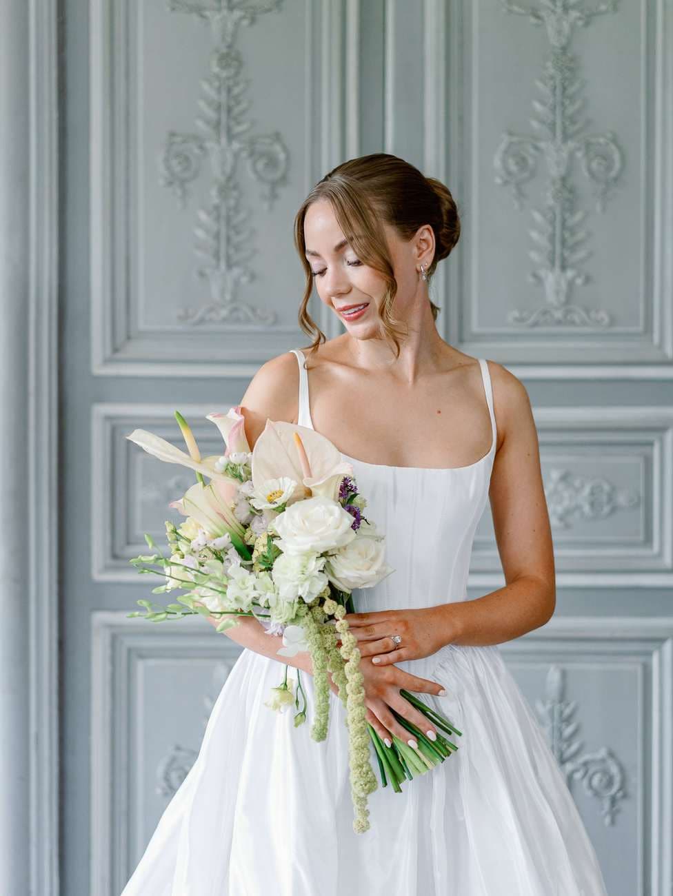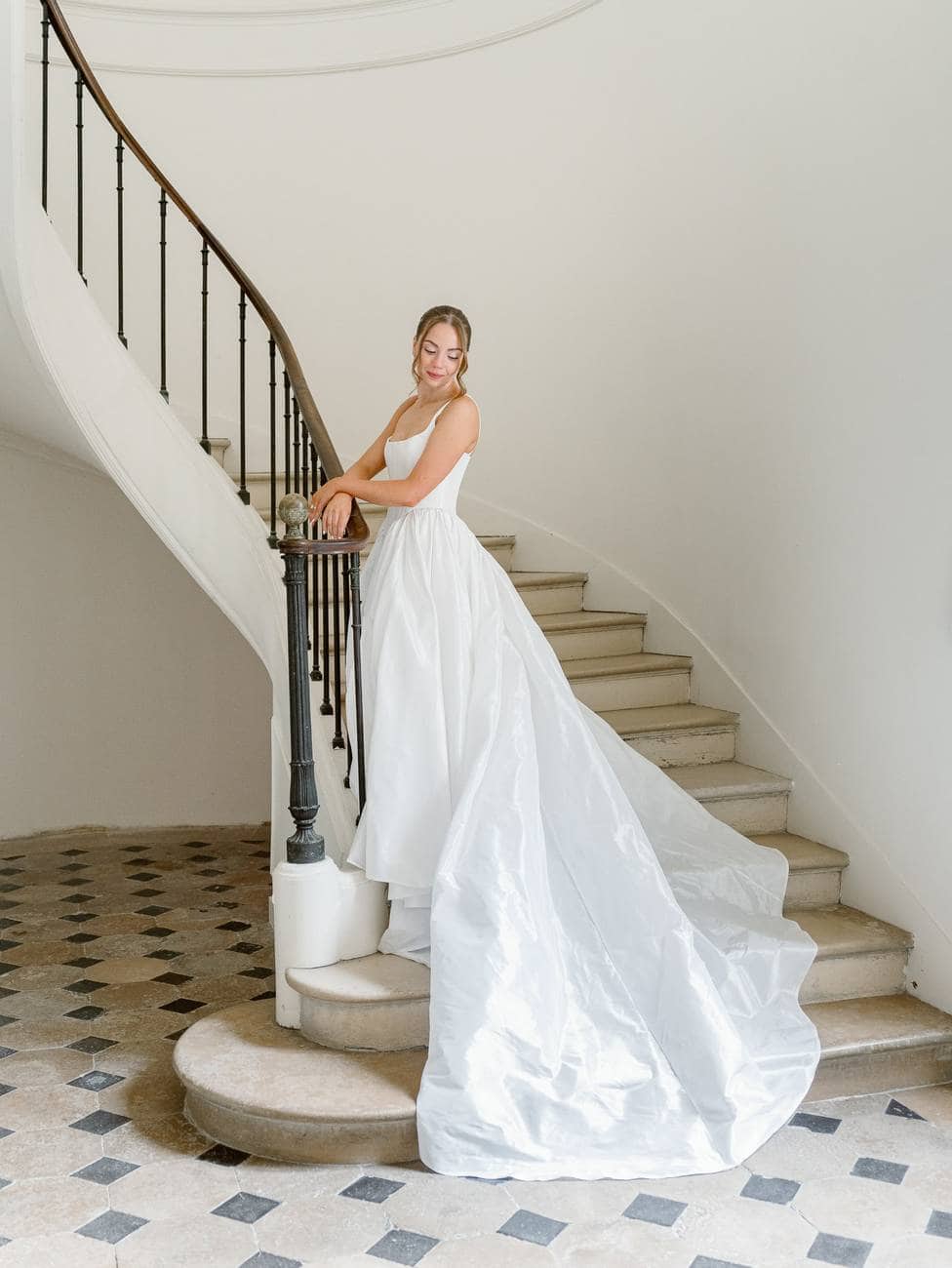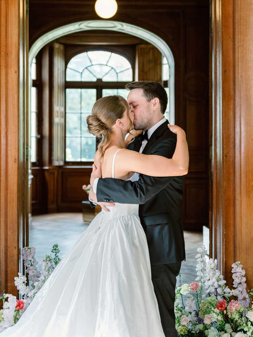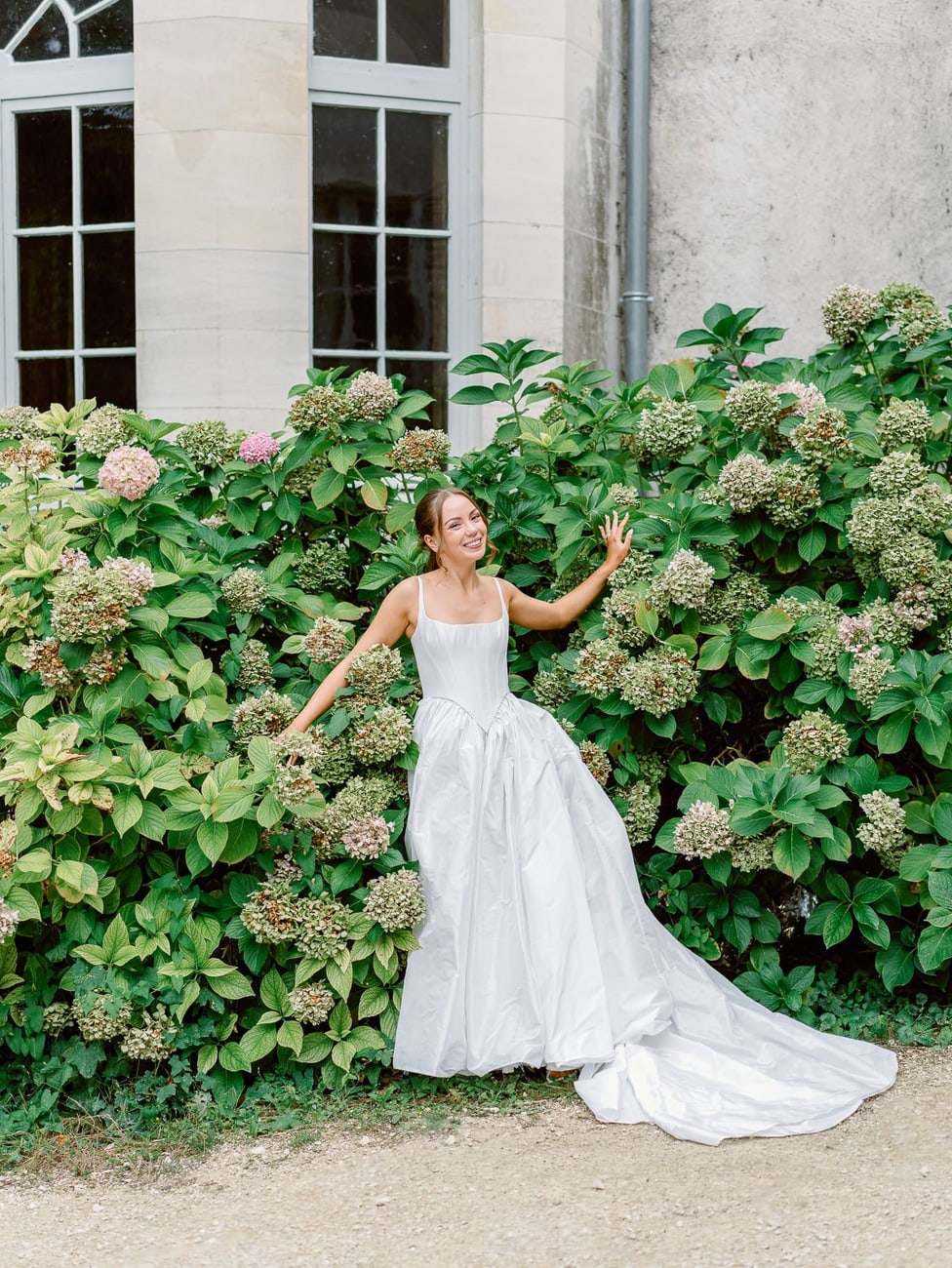 We began in the château’s stunning white spiral staircase, creating timeless and elegant images that highlighted the venue’s historic charm. From there, we moved to the gardens, where the backdrop of the château itself added a majestic touch to their photos.