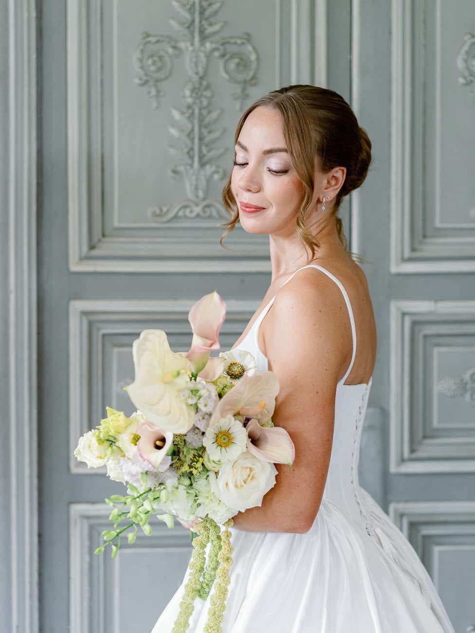 Nestled in the French countryside, Château de Thauvenay is a hidden gem, offering a romantic and serene setting for couples seeking a unique destination wedding experience. With its beautiful staircase, lush gardens, and elegant architecture, it was the perfect backdrop for Lydia and Mitch’s intimate wedding day.