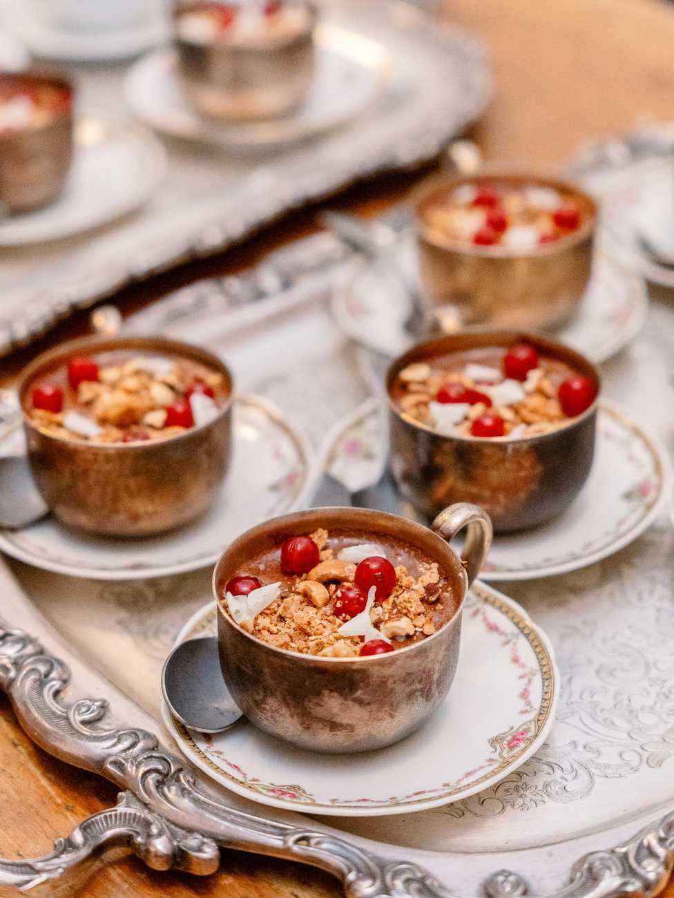 For dessert, guests were treated to individual cups of rich chocolate mousse, a sweet and personal way to end the meal. To surprise the newlyweds, the staff also brought out a large dessert platter adorned with sparklers, adding a touch of excitement and celebration to the intimate dinner.