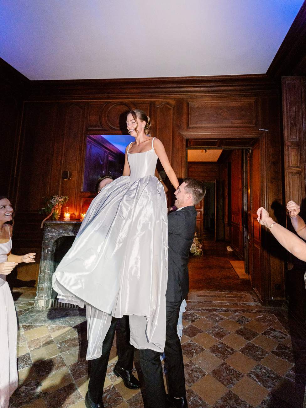 Guests performed fun choreographies, often lifting the newlyweds into the air and cheering them on, while the two young nieces danced alongside the adults, adding even more joy to the evening.