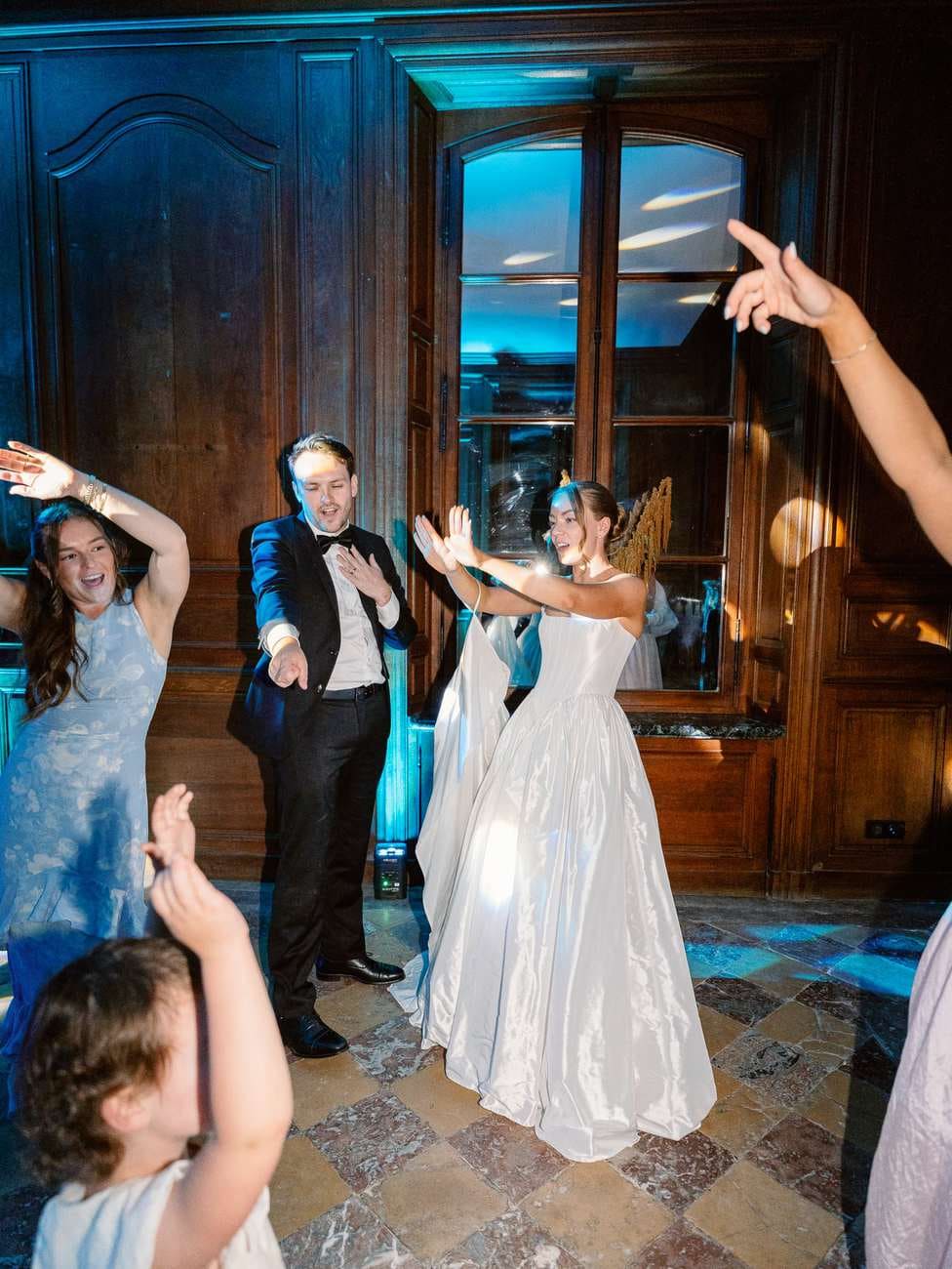 Even though Lydia and Mitch’s wedding was an intimate celebration with just 14 guests, the dance floor at Château de Thauvenay quickly turned into the heart of the party. The evening was filled with energy and laughter as everyone joined in, creating a lively and unforgettable atmosphere.