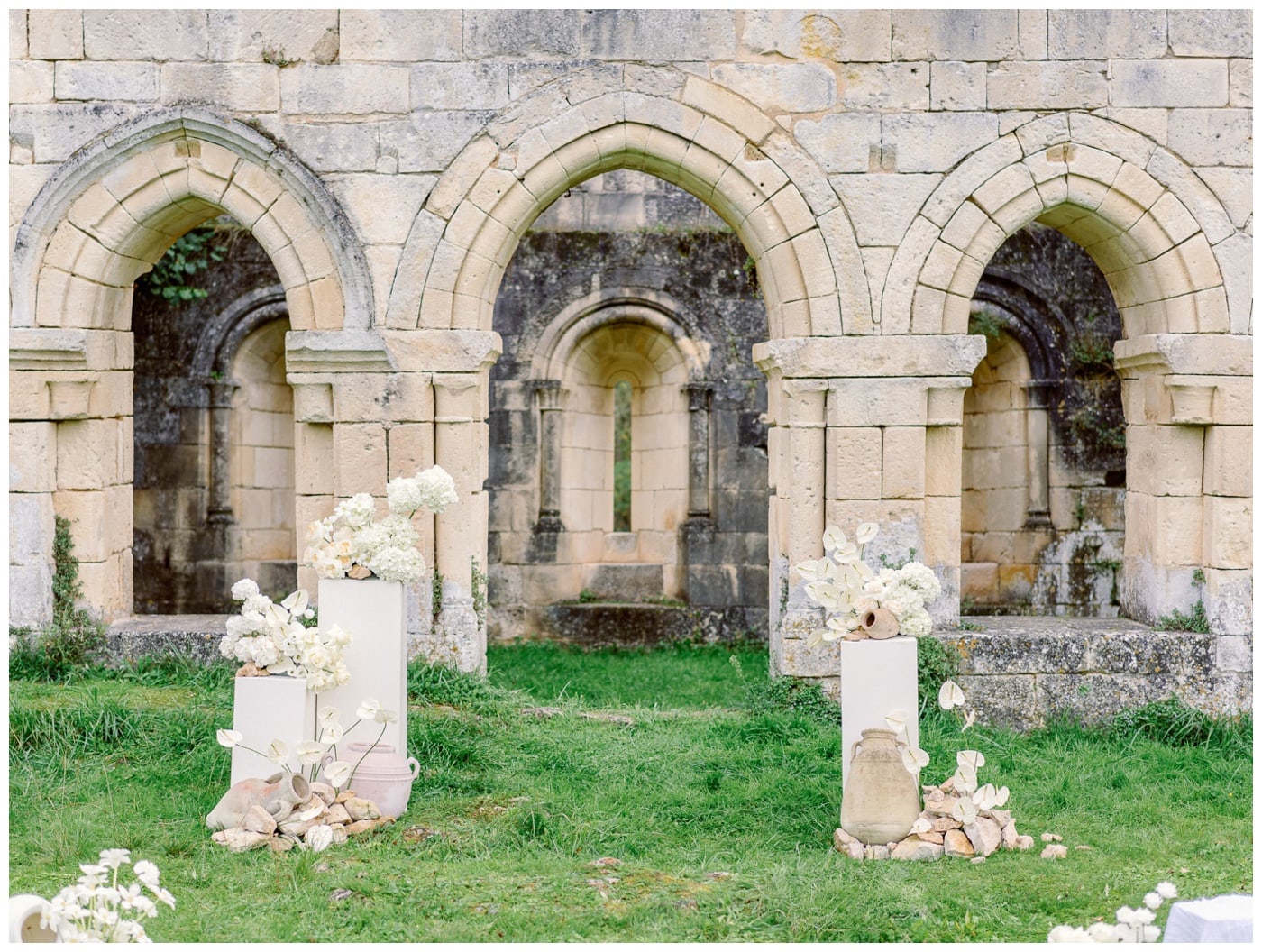 In the peaceful French countryside, the old Abbey of Notre-Dame de Boschaud was the setting for a soft and timeless wedding inspiration shoot.